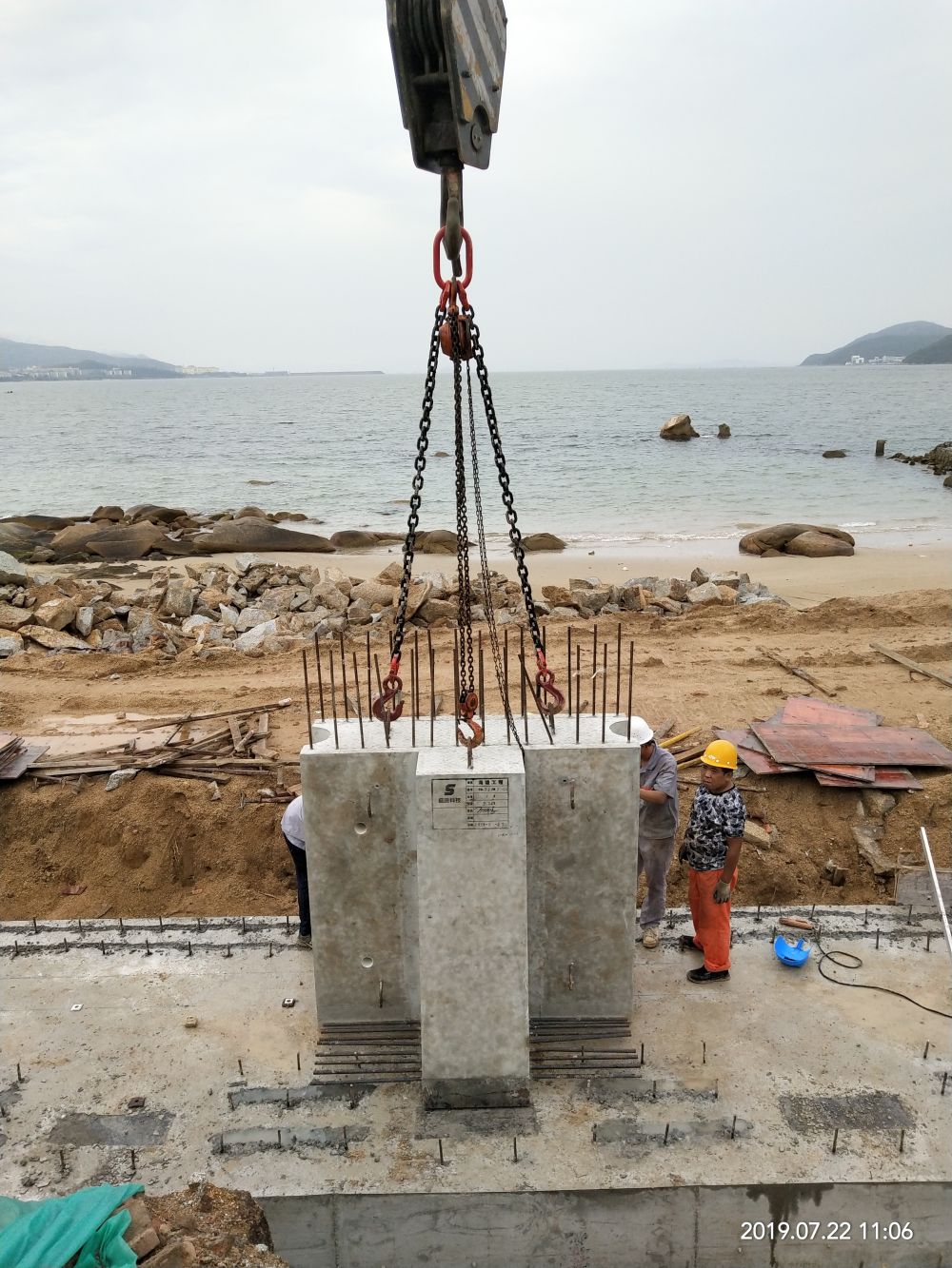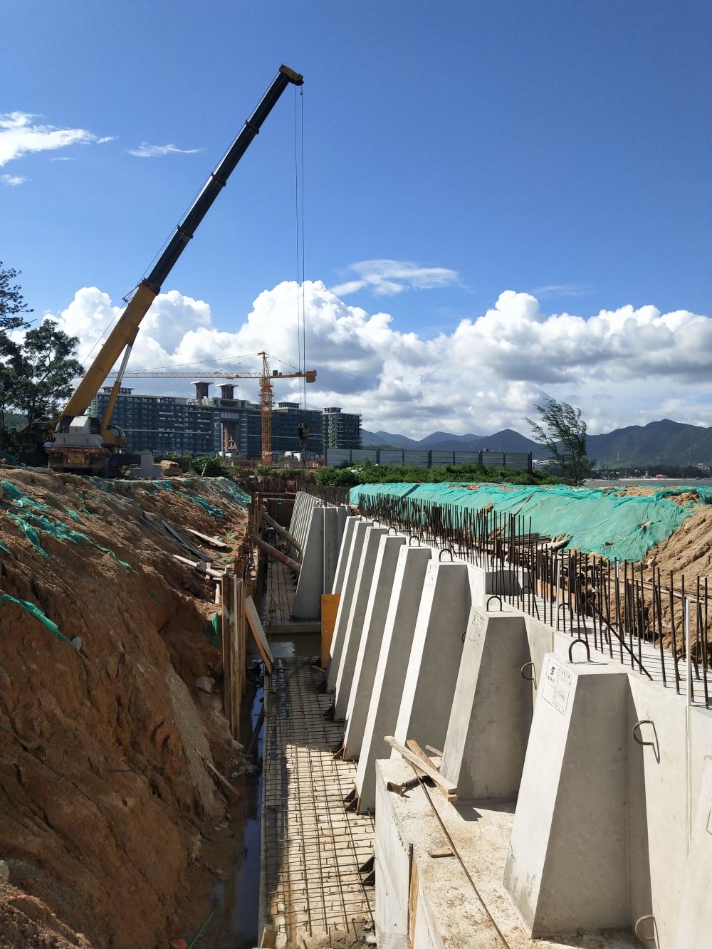 大鵬王母海堤災后重建項目 本項目為共青團深圳市委教育基地海堤災后修復工程項目,采用4種不同高度的預制擋土墻,預制構件應用于搶險救急項目,大大降低了施工作業難度,減少工期,加速防汛海堤的建設。